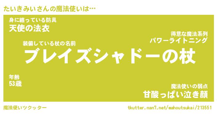 | ファンタジー風あだ名 | 『タイフェル』『エターナルタイキミイー』 |