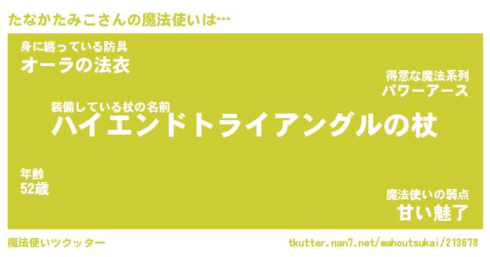 | 男性向けラノベタイトル風あだ名 | 『タナカタミコアートオンライン』 |