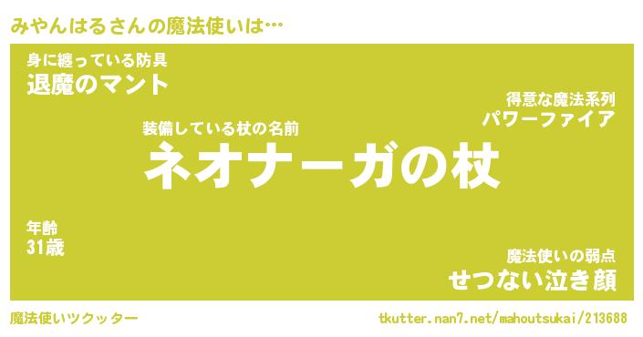 | ファンタジー風あだ名 | 『ミヤフェル』『エターナルミヤンハルー』 |