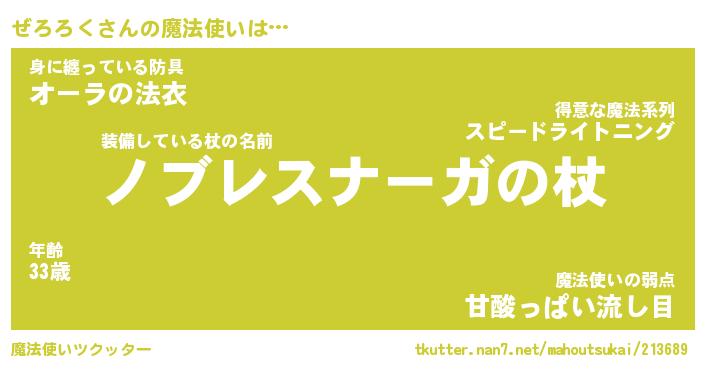 | ファンタジー風あだ名 | 『ゼロフェル』『エターナルゼロロクー』 |