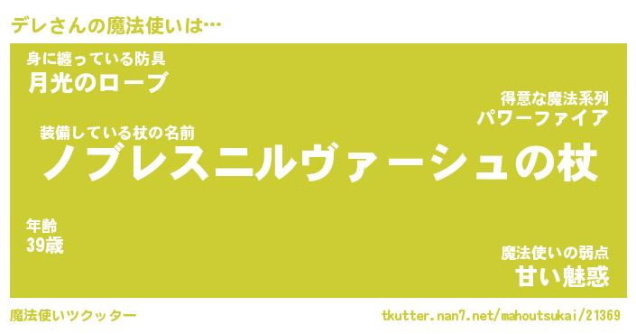 | ファンタジー風あだ名 | 『デレフェル』『エターナルデレー』 |