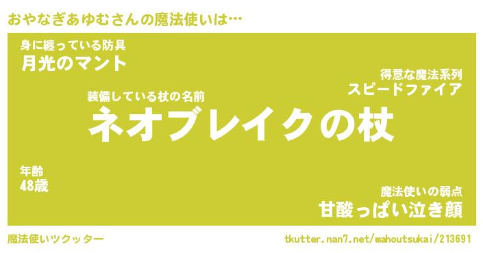 | 肩書あだ名 | 『おやなぎあゆむ店長』 |