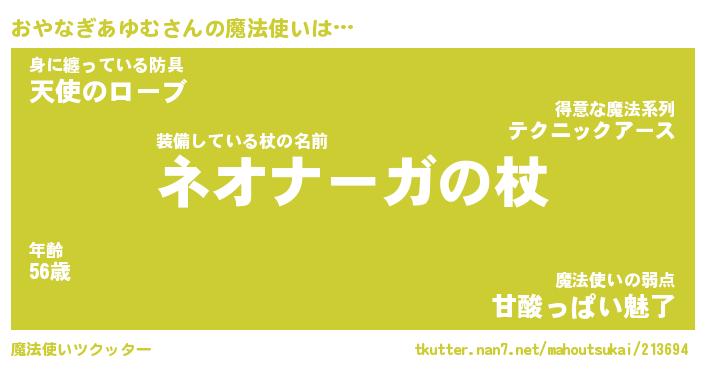 | 男性向けラノベタイトル風あだ名 | 『オヤナギアユムアートオンライン』 |