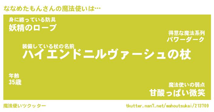 | 男性向けラノベタイトル風あだ名 | 『ナナメタモンアートオンライン』 |