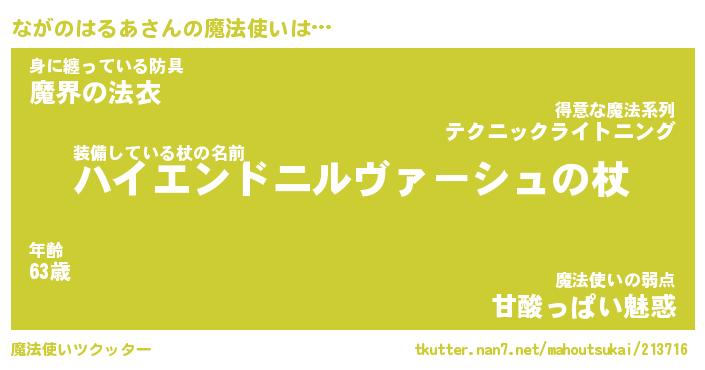 | 男性向けラノベタイトル風あだ名 | 『ナガノハルアアートオンライン』 |