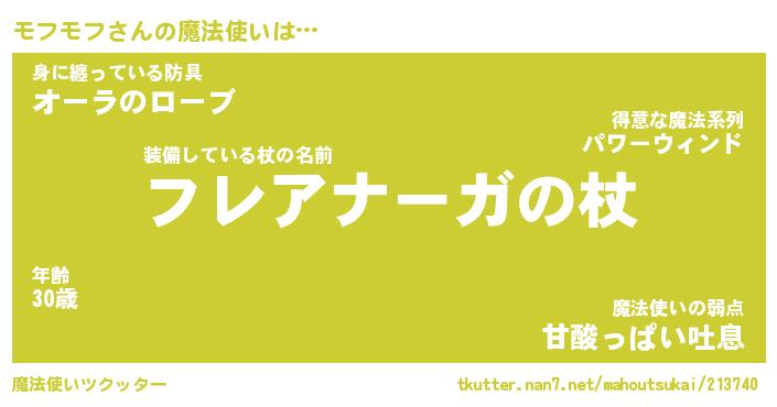 | ファンタジー風あだ名 | 『モフフェル』『エターナルモフモフー』 |