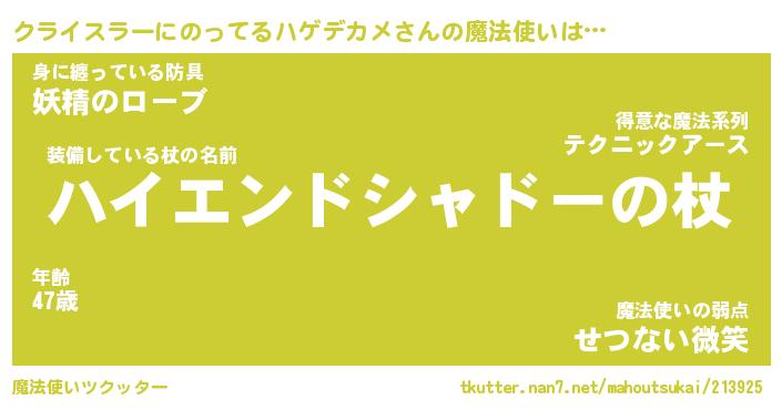 | 伝説のあだ名 | 『封印されし竜騎士クライスラーにのってるハゲデカメ』 |