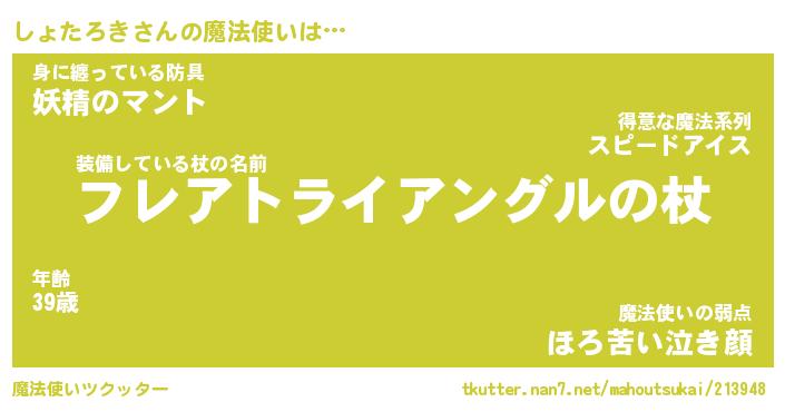 | 男性向けラノベタイトル風あだ名 | 『しょたろきの憂鬱』 |
