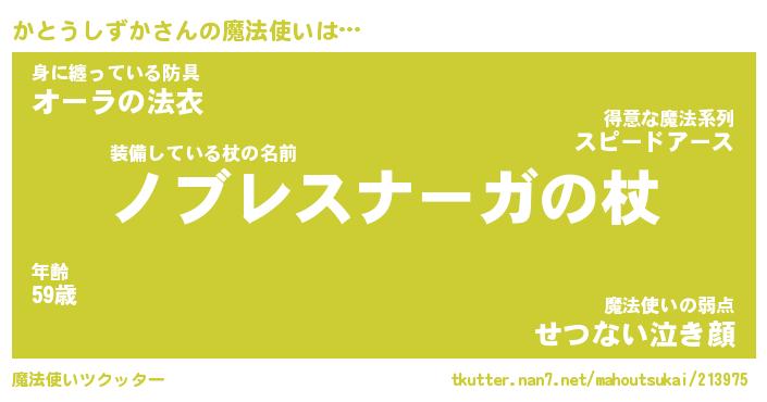 | 男性向けラノベタイトル風あだ名 | 『カトウシズカアートオンライン』 |