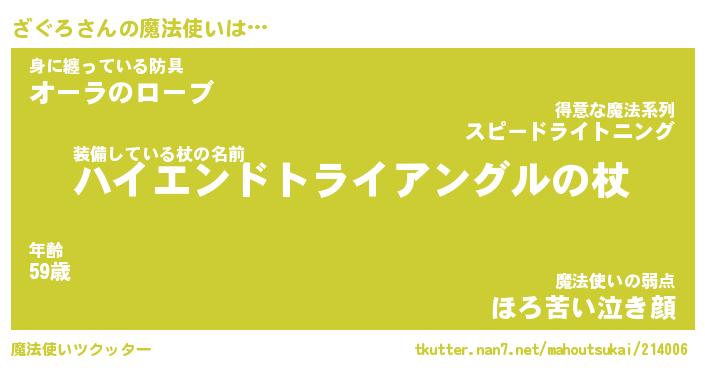 | 伝説のあだ名 | 『封印されし傭兵ざぐろ』 |