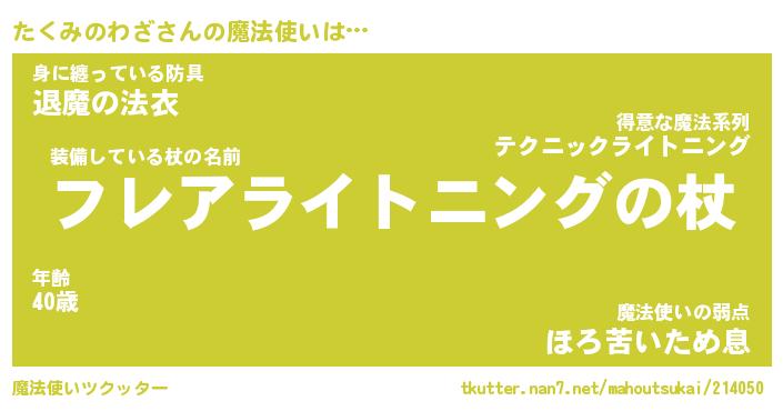 | ヒーロー風カッコイイあだ名 | 『スーパータクミノワザ』『魔戒騎士タク』 |