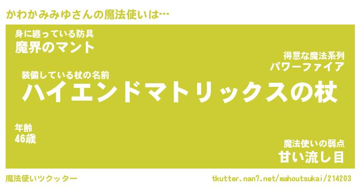 | 伝説のあだ名 | 『封印されし竜騎士かわかみみゆ』 |