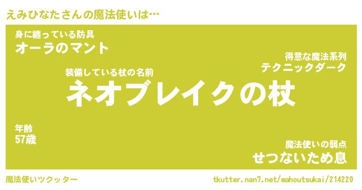 | 伝説のあだ名 | 『不死鳥の傭兵えみひなた』 |