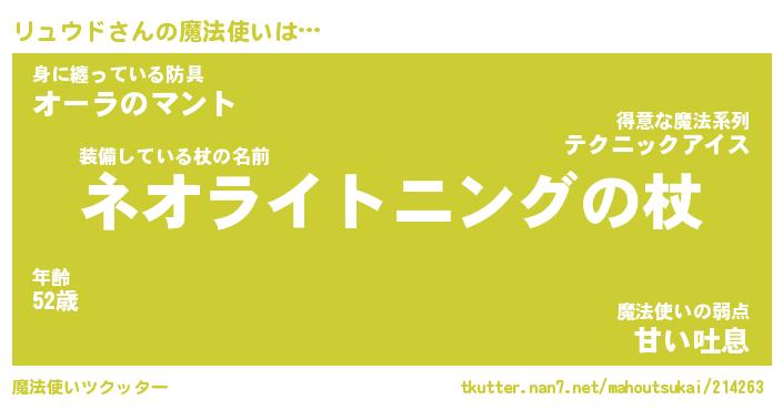 | ファンタジー風あだ名 | 『リュフェル』『エターナルリュウドー』 |