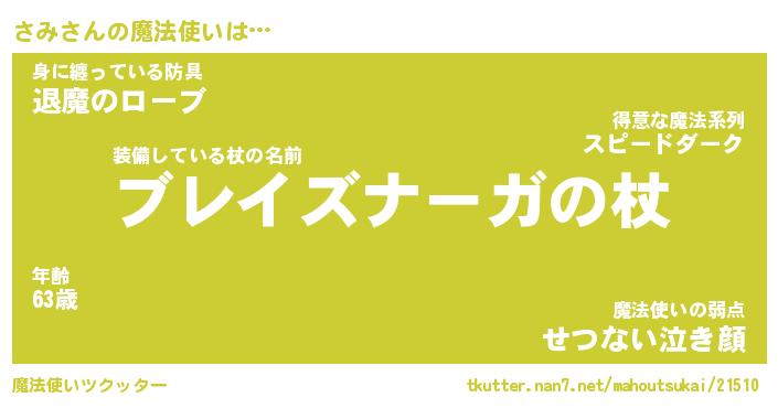 | ファンタジー風あだ名 | 『サミフェル』『エターナルサミー』 |