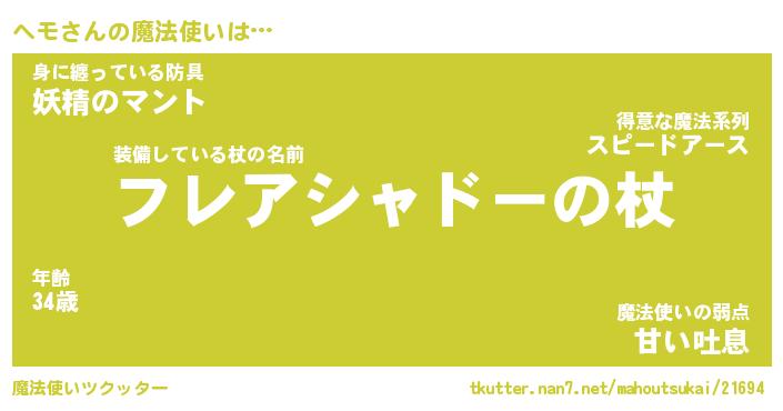 | ポケモン風あだ名 | 『ヘモチュウ』『ヘモダネ』『ヒヘモ』 |