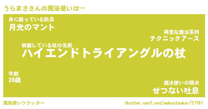 | ファンタジー風あだ名 | 『ウラフェル』『エターナルウラマサー』 |