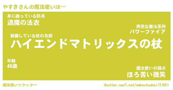 | 男性向けラノベタイトル風あだ名 | 『ヤスキアートオンライン』 |