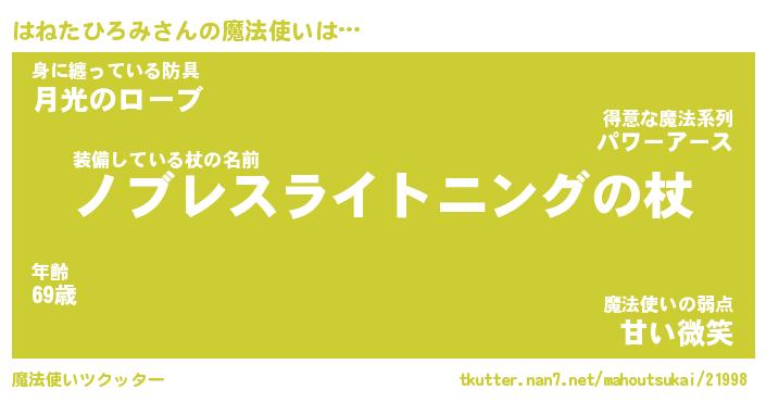 | 女子向けラノベタイトル風あだ名 | 『はねたひろみ姫と円卓の騎士』 |