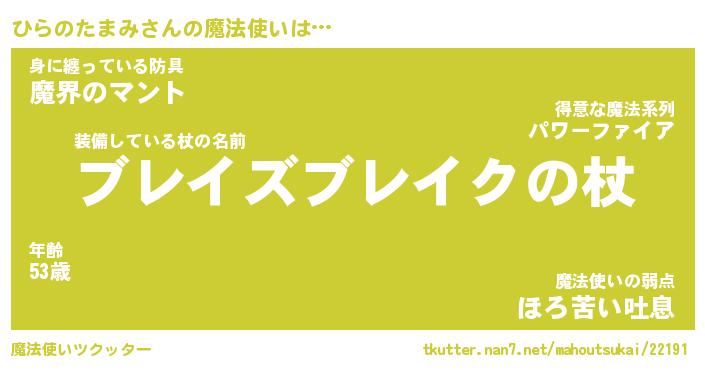 | ヒーロー風カッコイイあだ名 | 『スーパーヒラノタマミ』『炎刃騎士ヒラ』 |