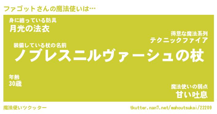 | 男性向けラノベタイトル風あだ名 | 『ファゴットアートオンライン』 |