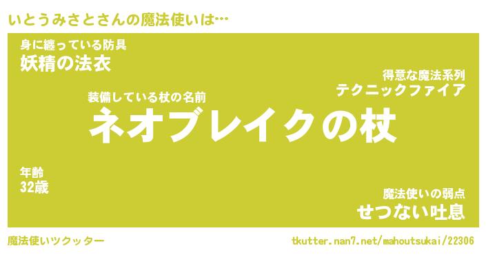 | ヒーロー風カッコイイあだ名 | 『スーパーイトウミサト』『天弓騎士イト』 |