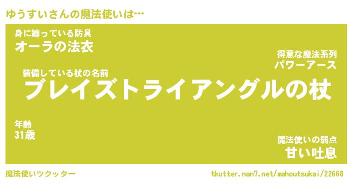 | ファンタジー風あだ名 | 『ユウフェル』『エターナルユウスイー』 |