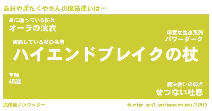 | 肩書あだ名 | 『あおやぎたくや店長』 |