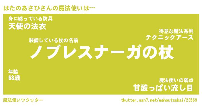 | ヒーロー風カッコイイあだ名 | 『スーパーハタノアサヒ』『幻影騎士ハタ』 |