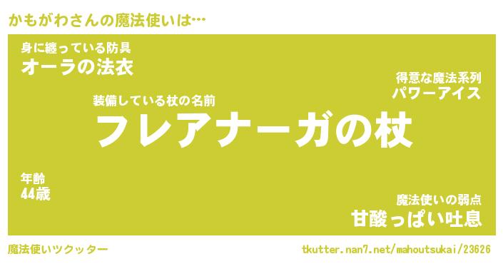 | ファンタジー風あだ名 | 『カモフェル』『エターナルカモガワー』 |