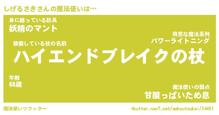| ファンタジー風あだ名 | 『シゲフェル』『エターナルシゲルサキー』 |
