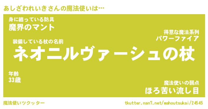 | 伝説のあだ名 | 『不死鳥のスナイパーあしざわれいき』 |