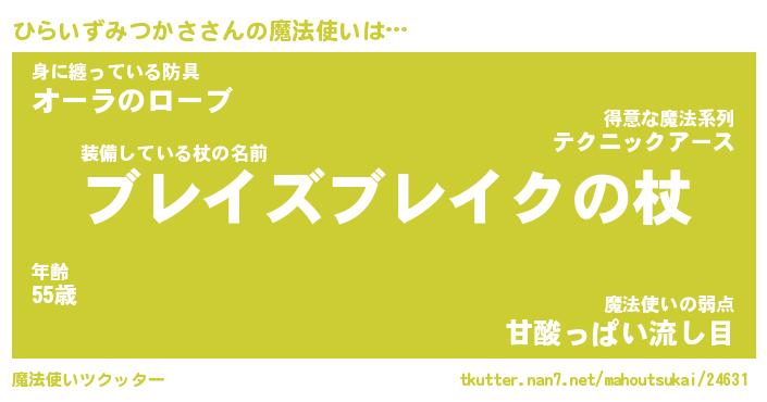 | 胡散臭い通販商品みたいなあだ名 | 『必ず成功する水晶球…その名も「ひらいずみつかさ」』 |