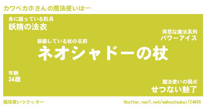 | ファンタジー風あだ名 | 『カワフェル』『エターナルカワベカホー』 |