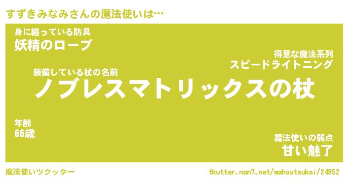 | ファンタジー風あだ名 | 『スズフェル』『ファントムスズス』 |