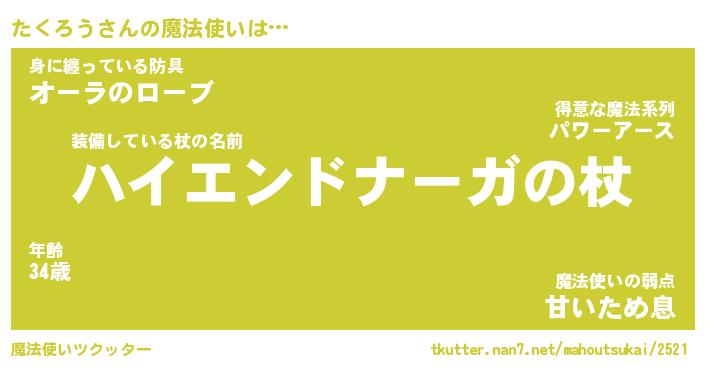 | ファンタジー風あだ名 | 『タクフェル』『エターナルタクロウー』 |