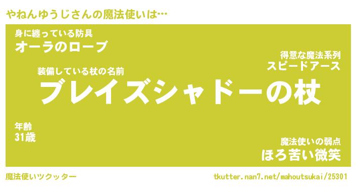 | ヒーロー風カッコイイあだ名 | 『スーパーヤネンユウジ』『魔戒騎士ヤネ』 |
