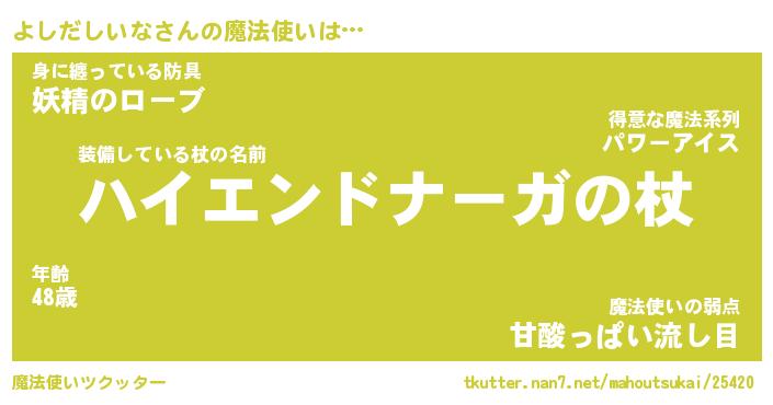 | 胡散臭い通販商品みたいなあだ名 | 『億万長者になれる霊験あらたかなお札…その名も「よしだしいな」』 |