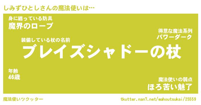 | ヒーロー風カッコイイあだ名 | 『スーパーシミズヒトシ』『魔戒騎士シミ』 |