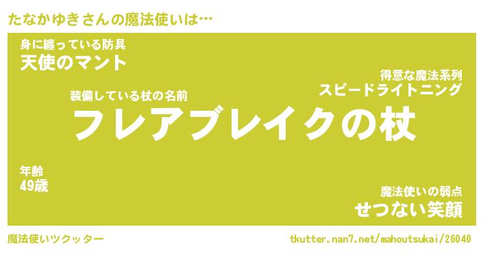 | ファンタジー風あだ名 | 『タナフェル』『エターナルタナカユキー』 |