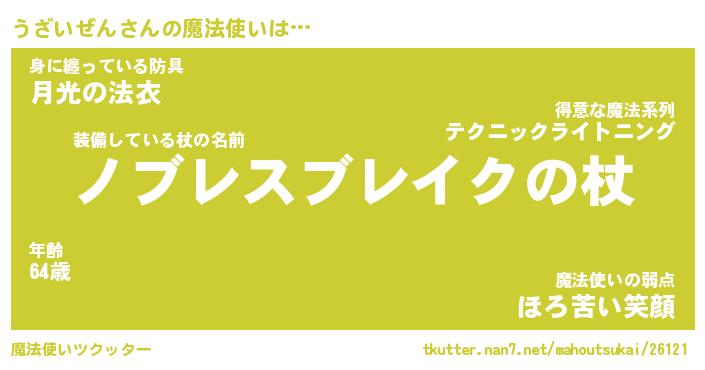 | ヒーロー風カッコイイあだ名 | 『スーパーウザイゼン』『魔戒騎士ウザ』 |