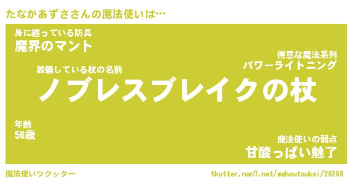 | 伝説のあだ名 | 『封印されし傭兵たなかあずさ』 |