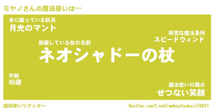 | ファンタジー風あだ名 | 『ミヤフェル』『エターナルミヤノー』 |