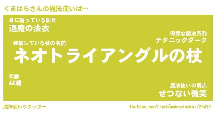 | ヒーロー風カッコイイあだ名 | 『スーパークマハラ』『幻影騎士クマ』 |
