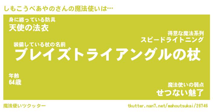 | 女子向けラノベタイトル風あだ名 | 『(仮)しもこうべあやののやんごとなき事情』 |