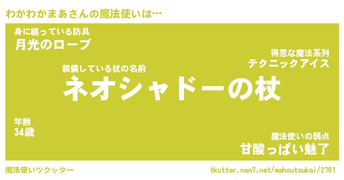 | 男性向けラノベタイトル風あだ名 | 『わかわかまあの憂鬱』 |
