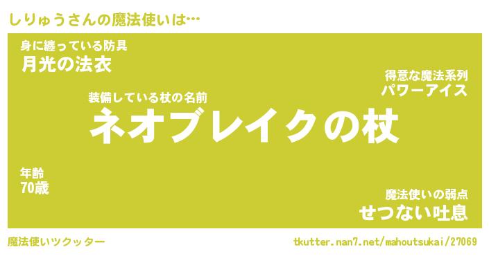 | 男性向けラノベタイトル風あだ名 | 『しりゅうの憂鬱』 |