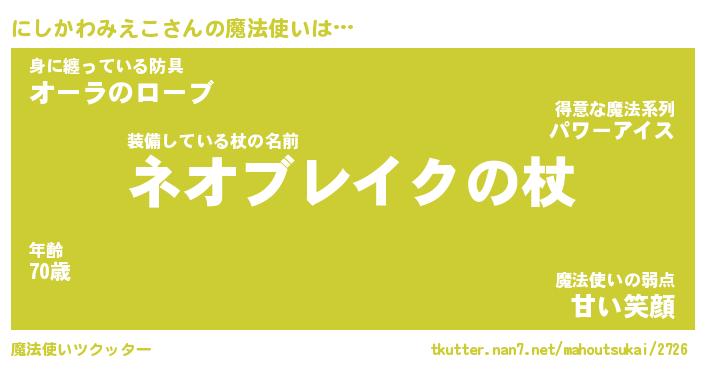 | ファンタジー風あだ名 | 『ニシフェル』『ファントムニシス』 |