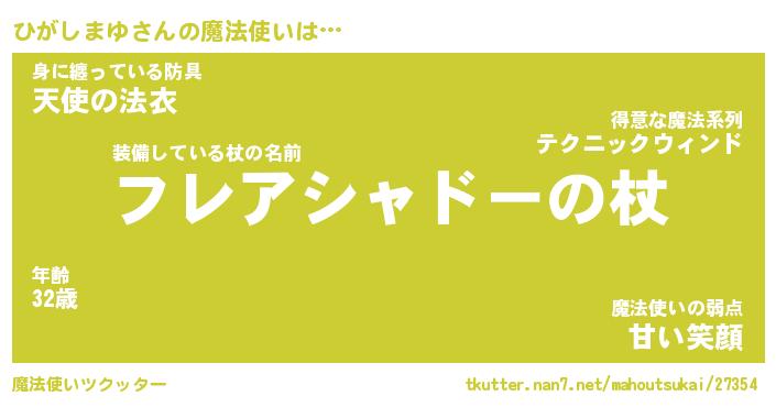 | ファンタジー風あだ名 | 『ヒガフェル』『エターナルヒガシマユー』 |