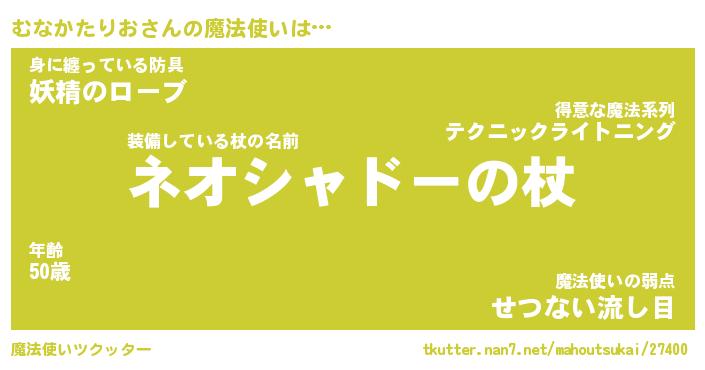 | 男性向けラノベタイトル風あだ名 | 『ムナカタリオアートオンライン』 |